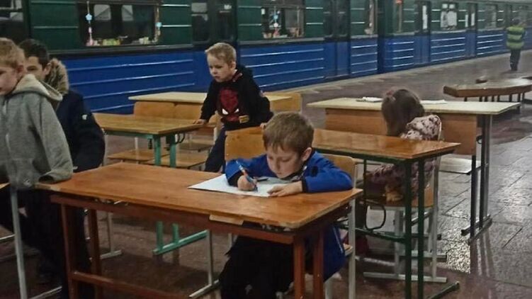 Импровизированный класс на одной из станций метро Харькова. Фото: Euromaidan Press