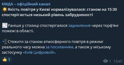 Кроме того, сообщалось, вчера киевлянам также рекомендовали закрыть окна и ограничить пребывание на улице из-за задымления воздуха, вызванного торфяными пожарами в Бучанском и Вышгородском районах Киевской области.