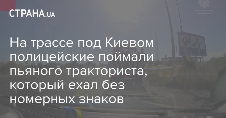 На трассе под Киевом полицейские поймали пьяного тракториста, который ехал без номерных знаков