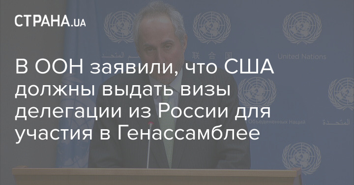 Генеральный секретарь ООН Антониу Гутерриш считает, что российской делегации должны быть выданы визы для участия в неделе высокого уровня Генеральной Ассамблеи всемирной организации.