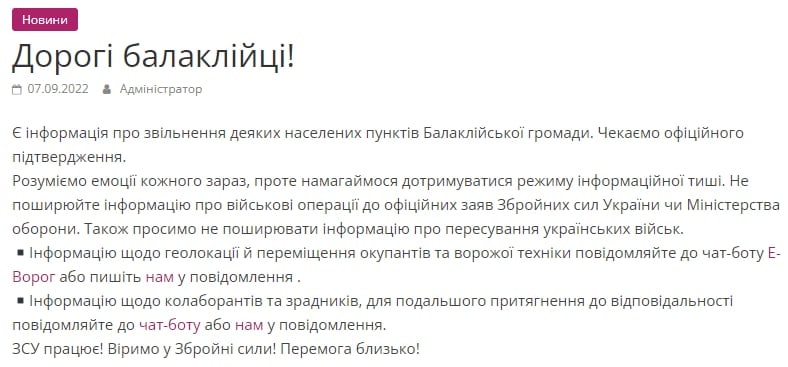 10.17 Жителей Балаклеи призвали соблюдать информационную тишину.
