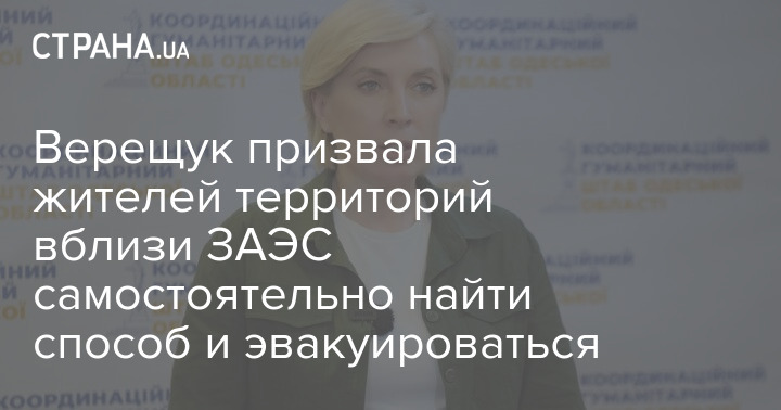 Верещук призвала жителей территорий вблизи ЗАЭС самостоятельно найти способ и эвакуироваться