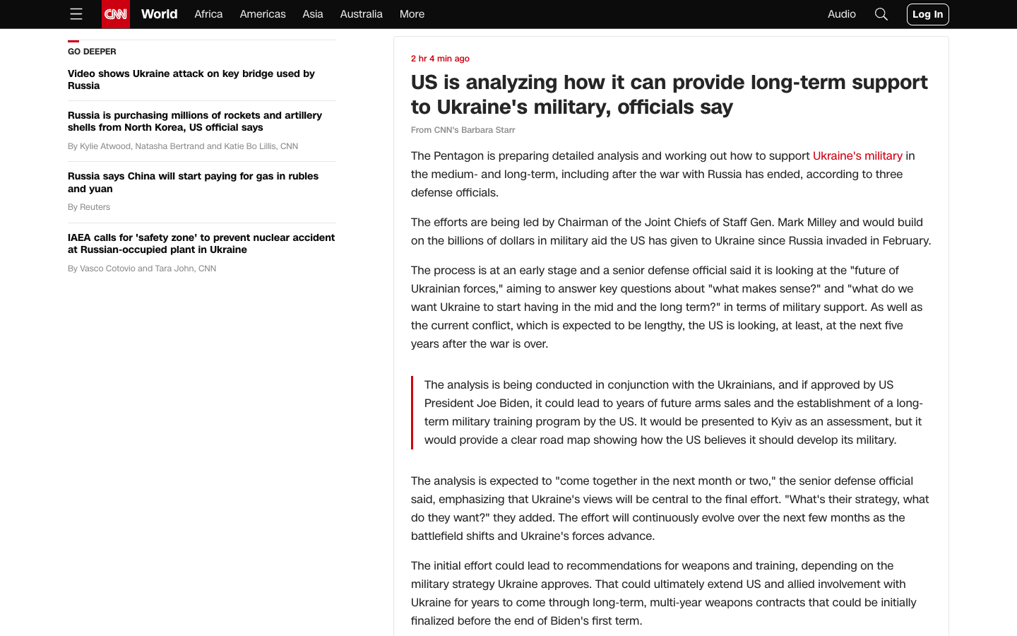 Американские чиновники говорят, что пока процесс находится на ранней стадии, в рамках которого американцы анализируют, какая военная помощь понадобится ВСУ в среднесрочной и долгосрочной перспективе, вплоть до пяти лет после окончания войны.