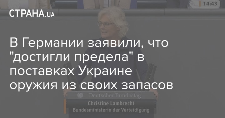 Министр обороны Германии Кристина Ламбрехт заявила, что ФРГ достигла предельного объема поставок вооружения Украине из запасов бундесвера.
