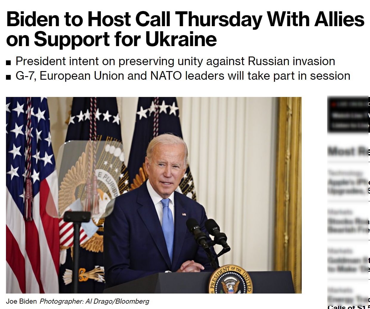 23:13 Президент Байден провел видеоконференцию с союзниками по теме постоянного предоставления безопасности и экономической помощи Украине.