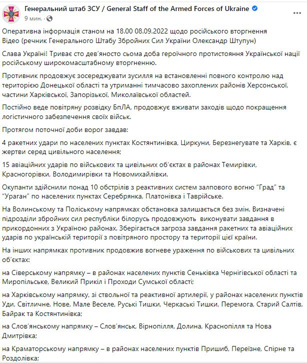 В среду, 8 сентября, в Украине идет уже 197-й день войны с Россией.
