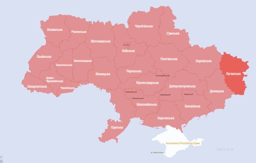 10:38 Большая часть Украины в зоне воздушной тревоги.