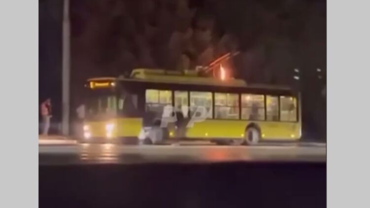 На кадрах можно заметить, что крыша троллейбуса охвачена огнем и дымом.