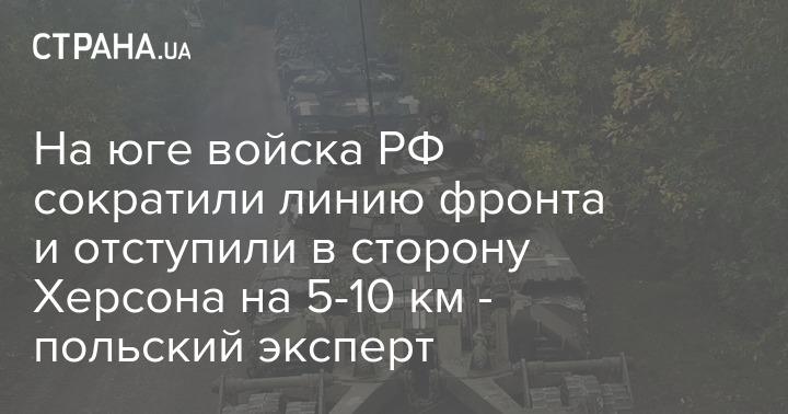 В Херсонской области войска РФ сократили линию фронта и отступили на 5-10 км в сторону Херсона от своих позиций для того, чтобы быть в досягаемости собственной артиллерии на левом берегу Днепра.