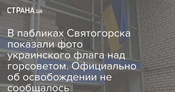 В святогорских телеграм-каналах сегодня выложили фото с украинским флагом на здании Святогорского горсовета. Официальной информации об освобождении Святогорска пока не сообщалось.