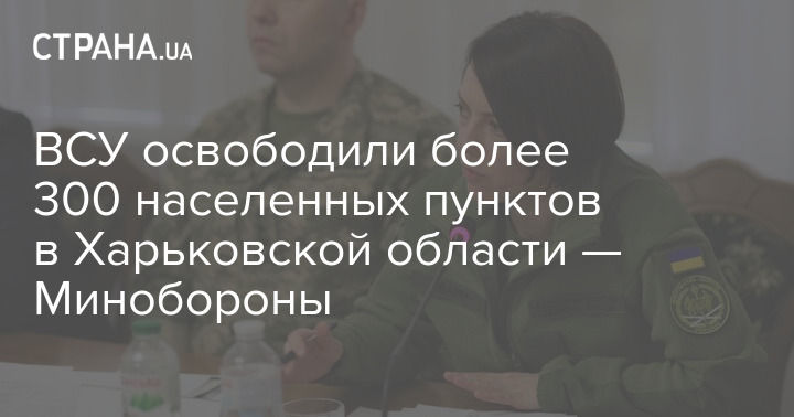 Замминистра обороны Украины Анна Маляр заявила, что ВСУ освободили уже 300 населенных пунктов в Харьковской области.
