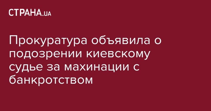 Прокуратура сообщила о подозрении судье Хозяйственного суда Киева за вынесение незаконного решения о банкротстве стратегического предприятия. Об этом сообщает пресс-служба ГПУ.