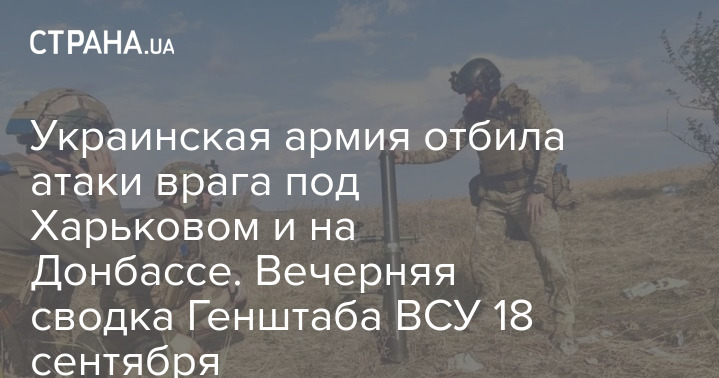 В Генеральном штабе Вооруженных сил Украины опубликовали оперативную сводку с фронта по состоянию на 18:00 18 сентября. Сообщается, что украинские войска отбили атаки армии России под Харьковом и на Донбассе.