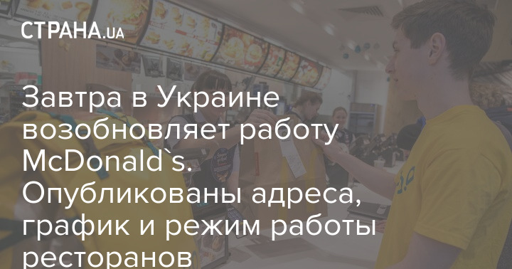 Завтра в Украине возобновляет работу McDonald's. Опубликованы адреса, график и режим работы ресторанов