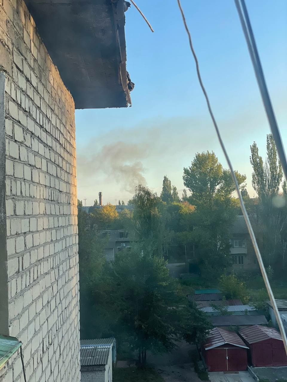 07:57 Утренний прилет по неподконтрольной Горловке. Над городом поднимается дым.