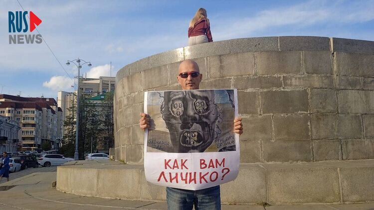 Кроме того, в Екатеринбурге одиночный пикет устроил бывший российский десантник Андрей Деба. Он держал в руках плакат, состоящий из репродукции картины Сальвадора Дали "Лицо войны" с подписью "Как вам личико?"