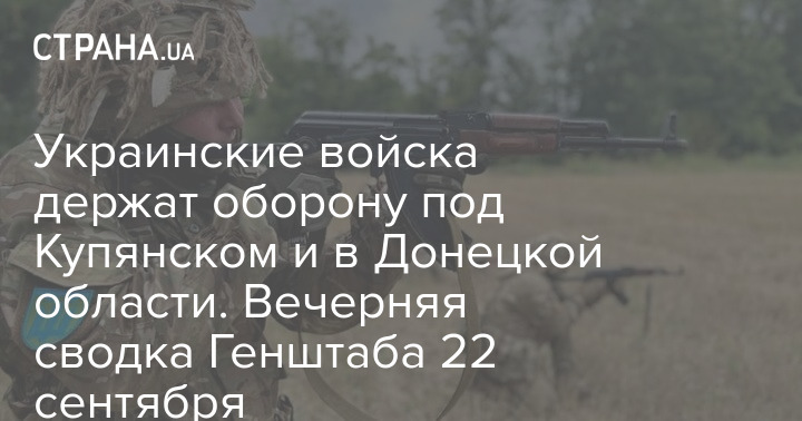 В Генеральном штабе Вооруженных сил Украины опубликовали оперативную сводку с фронта по состоянию на 18:00 22 сентября. Сообщается, что украинская армия отбила атаки российских войск под Купянском и в Донецкой области.