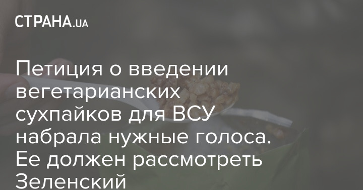 Петиция о введении вегетарианских сухпайков для ВСУ набрала нужные голоса. Ее должен рассмотреть Зеленский