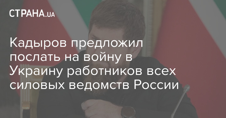 Глава Чечни Рамзан Кадыров предлагает послать на войну в Украине представителей силовых ведомств России: МЧС, Федеральной службы судебных приставов (ФССП), ФСБ, Федеральной службы охраны (ФСО), Службы внешней разведки (СВР), Федеральной службы исполнения наказаний (ФСИН), Федеральной таможенной службы (ФТС), прокуратуры, Следственного комитета (СК).