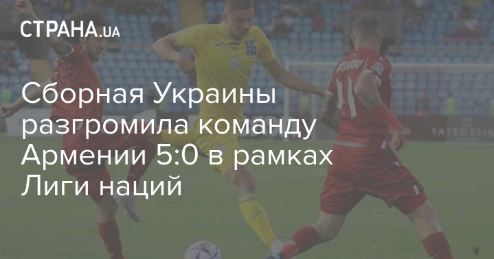 Сборная Украины по футболу разгромила команду Армении со счетом 5:0 в рамках группового этапа Лиги наций.