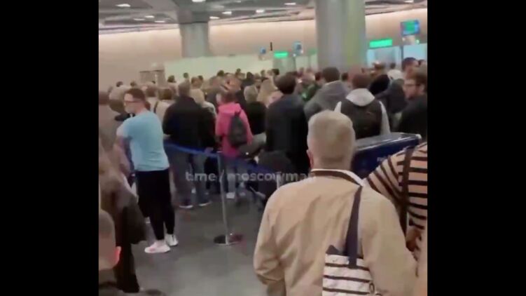 Появились видео огромных очередей на вылет в московских аэропортах Шереметьево и Внуково. Очевидно, ажиотаж вызван желанием россиян покинуть свою страну, которая объявила мобилизацию мужчин на войну с Украиной.