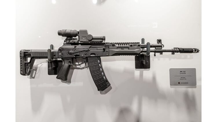 Разработанный "Калашниковым" автомат АК-12 имеет калибр 5,45 мм. Он обладает повышенной точностью и кучностью стрельбы. Значительно возросла эргономика автомата. АК-12 имеет несколько планок Пикатинни для установки дополнительного оборудования: прицелов, передней рукояти, фонаря, лазерного целеуказателя.