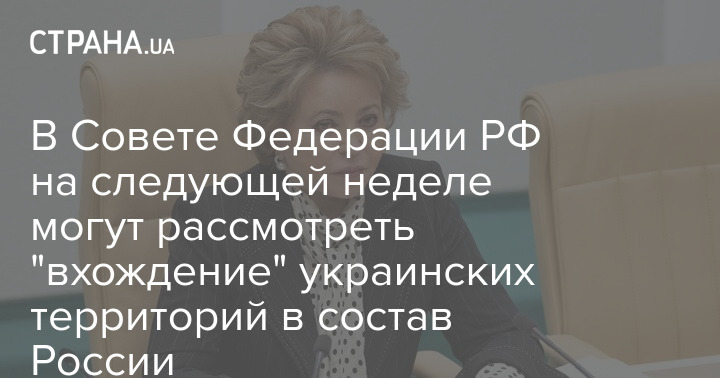 Спикер Совета Федерации РФ Валентина Матвиенко заявила, что 4 октября Совфед может рассмотреть вхождение т.н. "ДНР", "ЛНР" и оккупированных Херсонской и Запорожской областей в состав РФ при положительном исходе "референдумов".