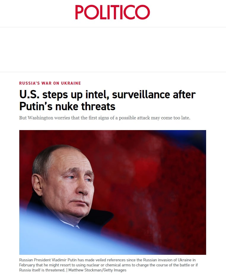 09.31 В США опасаются, что не смогут предугадать момент, когда Путин решится "совершить немыслимое" - то есть использовать ядерное оружие, пишет Politico.