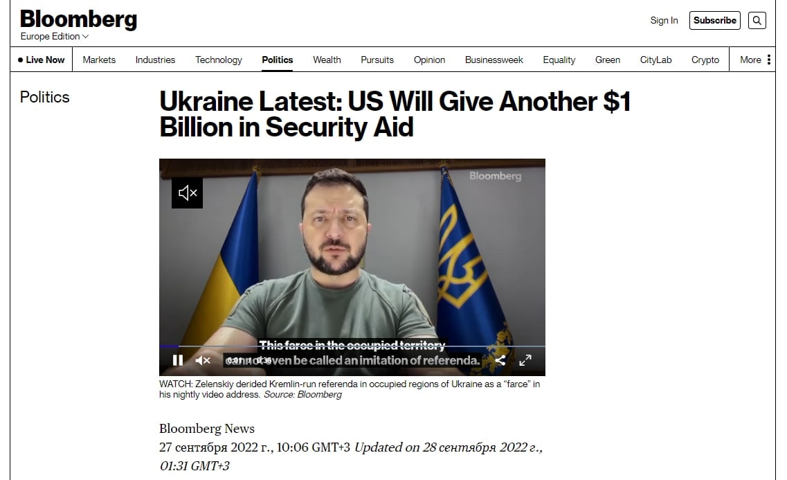 11.05 Сегодня администрация Байдена объявит о предоставлении Украине помощи в сфере безопасности еще на 1 миллиард долларов, пишет Bloomberg со ссылкой на два осведомленных источника.
