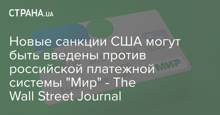 Новые санкции США против РФ могут быть нацелены на российскую платёжную систему "Мир".