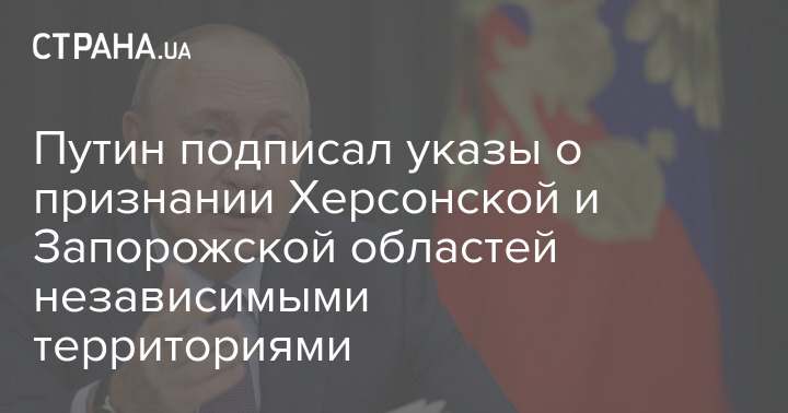 Президент России Владимир Путин подписал указы "о признании государственного суверенитета и независимости" Херсонской и Запорожской областей.