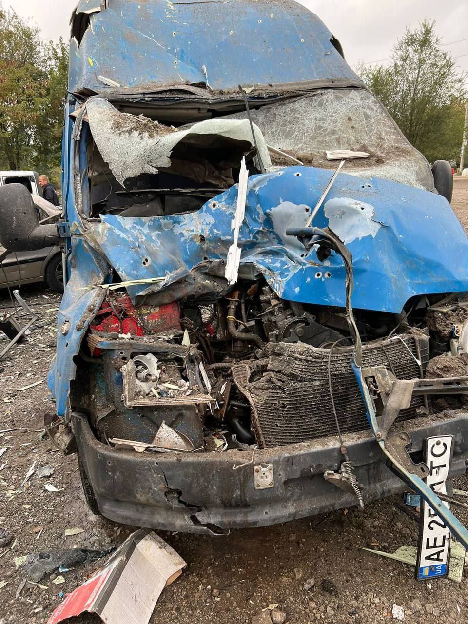 На месте ударов на асфальте образовались воронки, разбиты легковые авто и микроавтобусы.
