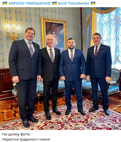Также он опубликовал фото Пасечника, Пушилина, Сальдо и Балицкого, подписав, что на нем изображены "рядовые предатели и чмони".