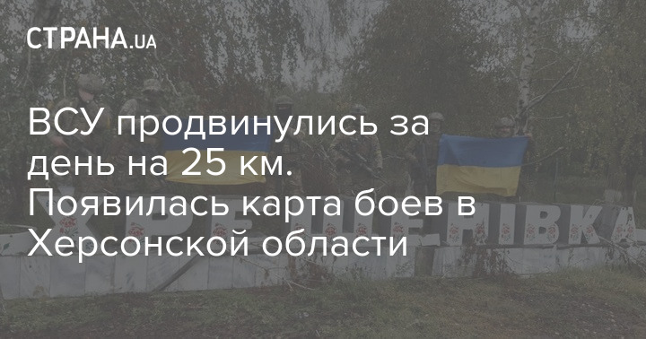 Утверждается, что украинские войска за день продвинулись на юг как минимум на 25 километров, о чем свидетельствует карта линии фронта на севере Херсонской области.