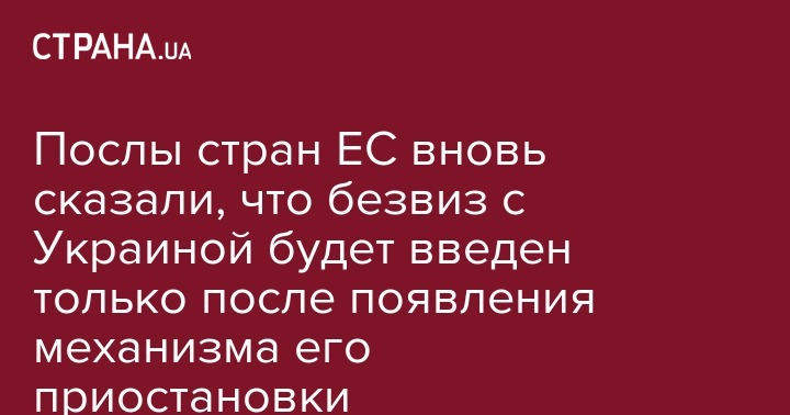 Послы стран ЕС вновь сказали, что безвиз с Украиной будет введен только после появления механизма его приостановки