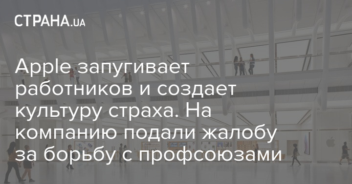 Национальный совет по трудовым отношениям США (N.L.R.B.) подал жалобу на американскую корпорацию Apple в связи с обвинениями в том, что она допрашивала своих работников розничной торговли об их поддержке профсоюзов и не позволяла размещать листовки в поддержку рабочих в комнате отдыха магазина.