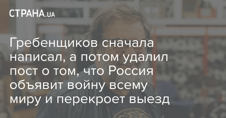 Гребенщиков сначала написал, а потом удалил пост о том, что Россия объявит войну всему миру и перекроет выезд