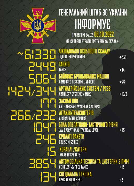 10.14 Потери армии РФ в Украине с 24 февраля.