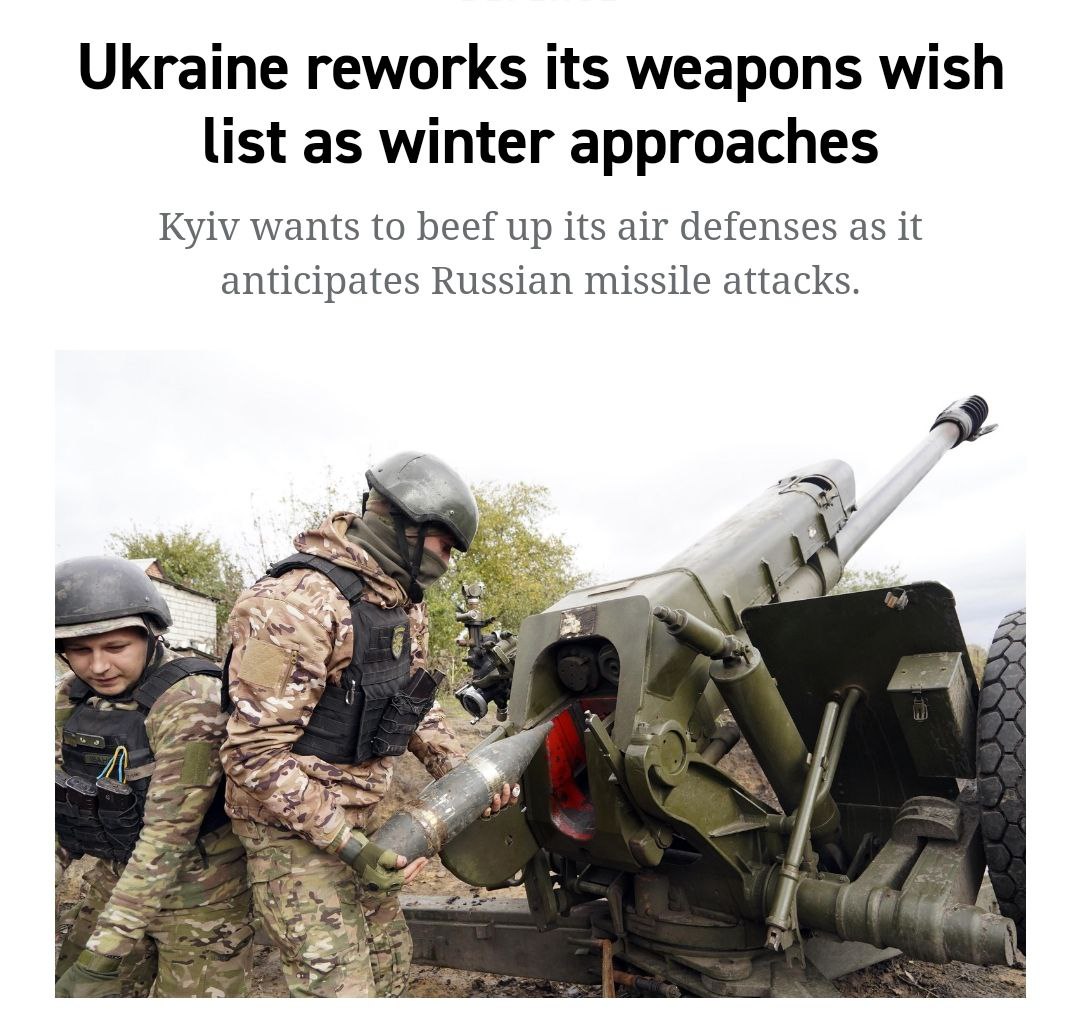 Во главе списка теперь стоят системы противовоздушной обороны - из-за опасений, что Россия усилит ракетные удары по гражданским объектам, когда линия фронта РФ рухнет.