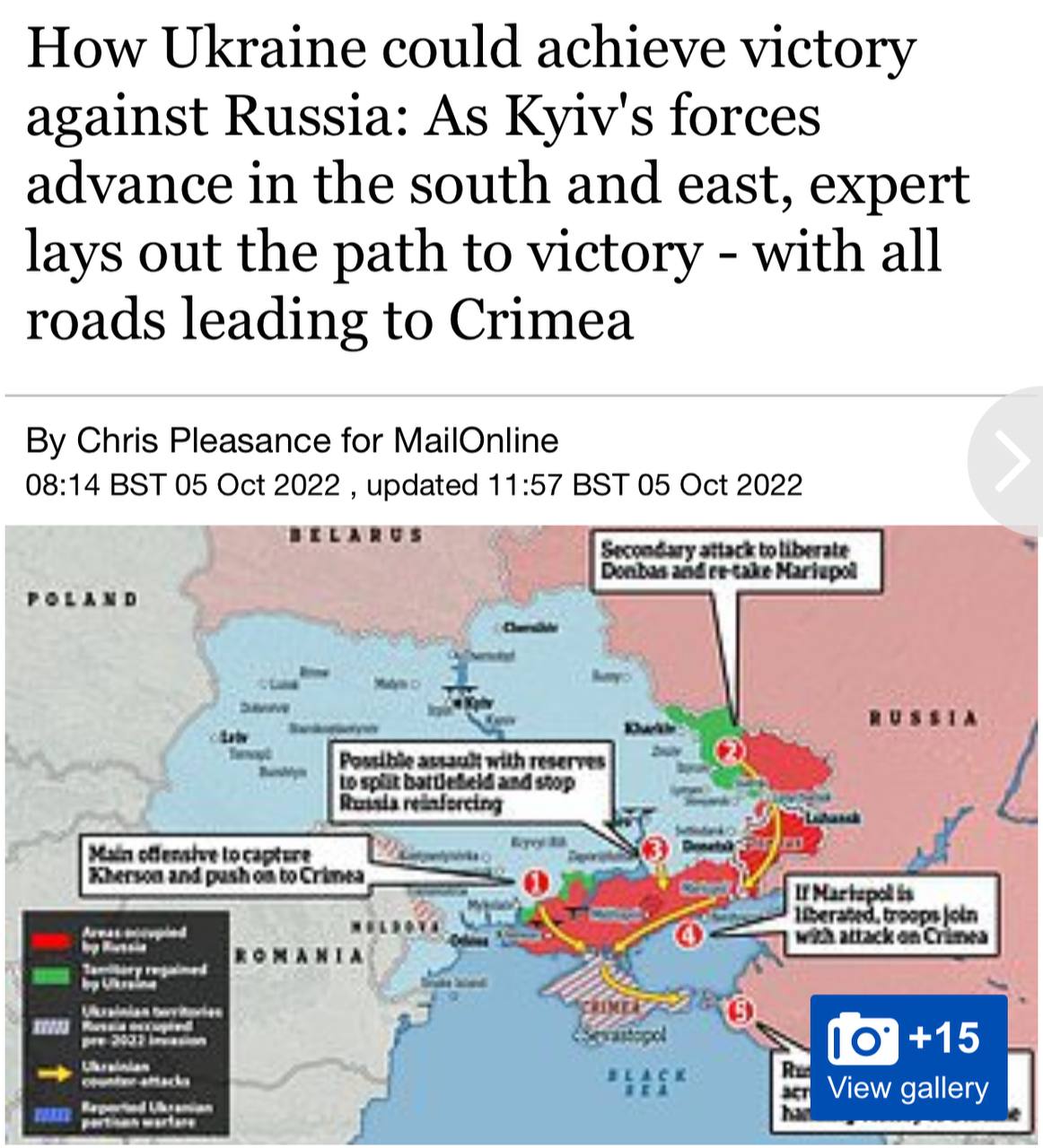 Завершающим этапом украинского наступления, по мнению издания, будет Крым.