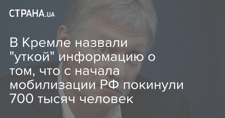 Пресс-секретарь президента РФ Дмитрий Песков назвал "уткой" сообщения о том, что 700 тысяч россиян покинули страну с начала частичной мобилизации.
