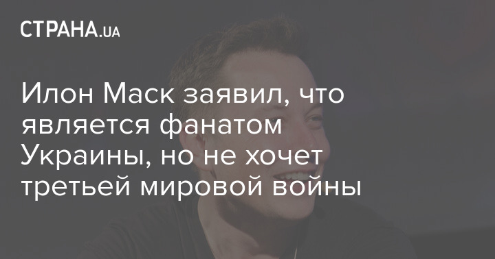Американский предприниматель Илон Маск заявил, что является фанатом Украины, но не хочет третьей мировой войны.