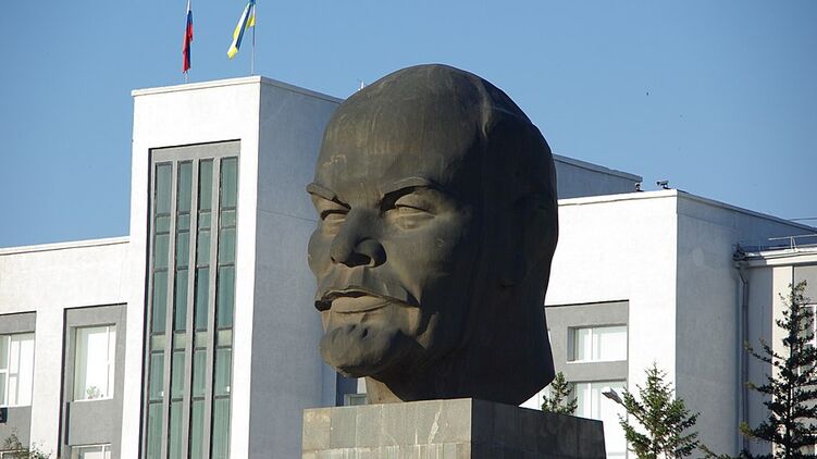 В российском Улан-Удэ неизвестный поджег баннер с буквой "V" на самой большой голове Ленина в мире. Видео