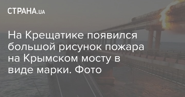 В субботу утром, 8 октября, около здания мэрии Киева на Крещатике появился большой рисунок пожара на Крымском мосту, сделанный в виде марки.