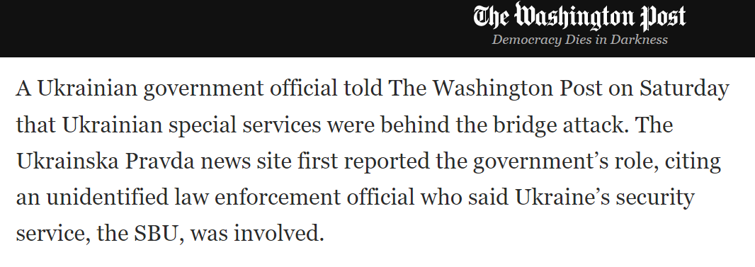 Но в любом случае сейчас на первый план выходит версия о скорее "символическом" ударе по мосту. Кто его совершил и зачем?