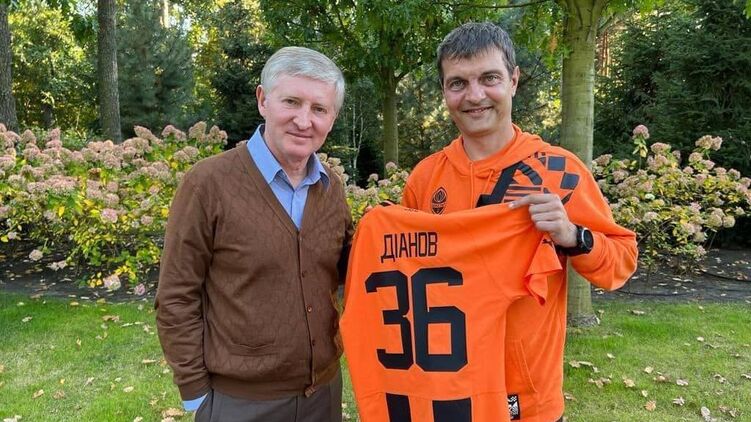 Фотографии с владельцем ФК "Шахтер" Дианов, давний болельщик клуба, опубликовал 8 октября на своей странице в Facebook без комментариев. Но по фото можно понять, что он получил в подарок именную клубную футболку с 36-м номером в честь 36-й отдельной бригады морской пехоты, в которой служит.
