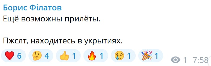 Он предупредил о возможных взрывах и призвал оставаться в укрытиях.