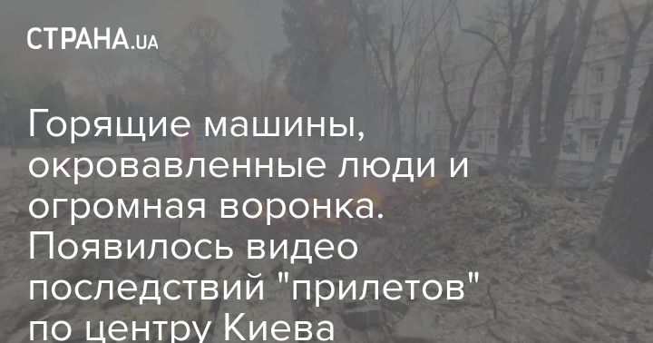 Горящие машины, окровавленные люди и огромная воронка. Появилось видео последствий "прилетов" по центру Киева