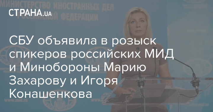 Служба безопасности Украины объявила в розыск официального представителя МИД РФ Марии Захаровой и спикера Минобороны РФ Игоря Конашенкова также объявлен в розыск СБУ.