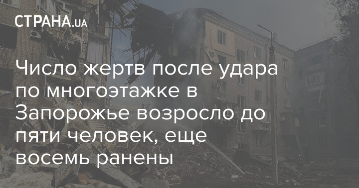 Число жертв после удара по многоэтажке в Запорожье возросло до пяти человек, еще восемь ранены